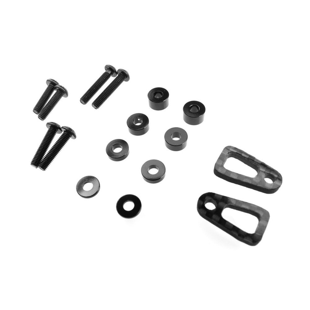 Revolution Design XB4 25 Ultra karbonový držák akumulátoru (RDRP0713) nahrazuje sériové plastové držáky akumulátoru modelu Xray XB4 2025 elegantními a lehkými karbonovými díly. Toto vylepšení, navržené pro estetiku i funkci, umožňuje nastavit výšku akumulátoru pomocí přiložených černých hliníkových podložek. Součástí balení jsou také šrouby různých délek pro zajištění přesného uchycení. A co je nejlepší, výměnu akumulátoru lze provádět bez použití jakéhokoli nářadí.