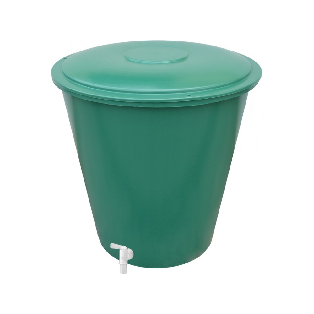 Plastový sud na dešťovou vodu komplet s víkem a výpustním kohoutkem pro snadné vypouštění vody.