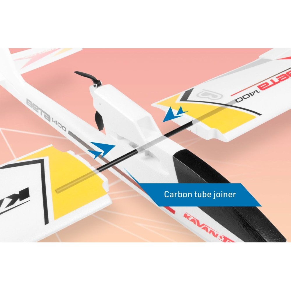 Ačkoliv vnějškově zachovává rysy původní BETY 1400, je BETA 1400 pod značkou KAVAN zcela nový model s mírně odlišnými rozměry, novým profilem křídla, novým střídavým motorem se sklopnou vrtulí a daleko propracovanější konstrukcí. Nové formy a pokrok v technologii lisování pěnových plastů zaručují, že všechny díly jsou daleko jemnější a přesnější. BETA 1400 - odolný školní a cvičný dříč - je ideální pro začínající piloty, které provede od úvodního otloukání přistávací plochy až k základním akrobatickým obratům a termickému plachtění. Stejně tak potěší rekreační víkendové letce, kterým poskytne skladný a snadno přepravitelný model pro dokonale relaxační polétání.