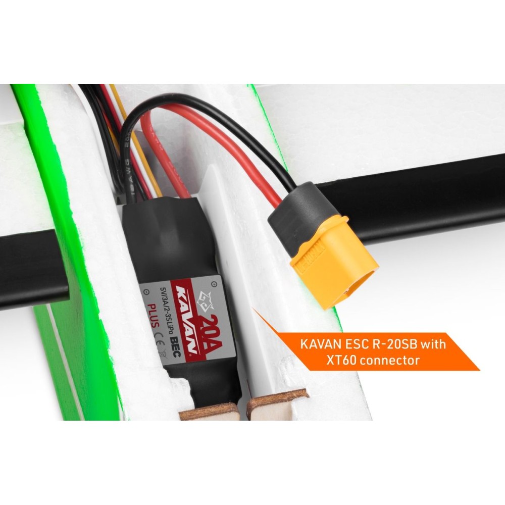 Trup modelu je zhotoven z vysoce odolného pěnového EPO (extrudovaného polyolefinu) s důkladnými vnitřními uhlíkovými výztuhami. V přídi je nainstalován střídavý elektromotor C2820-1450 se sklopnou vrtulí 7x6“ a regulátorem KAVAN R-20SB Plus. Kryt kabiny je odnímatelný, upevňuje se pomocí čepu vpředu a mechanického uzávěru vzadu. V přídi najdete dostatek prostoru pro pohonný akumulátor a přijímač. Mikroserva s kovovými převody pro ovládání polovin křídla, směrovky a výškovky jsou uložena v prostoru pod křídlem. Ocasní plochy jsou ovládány lanovody, poloviny křídla nastavitelnými táhly s kulovými čepy.