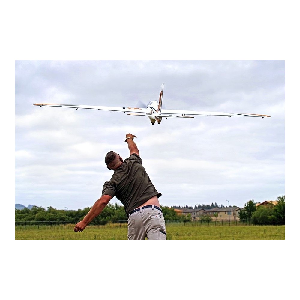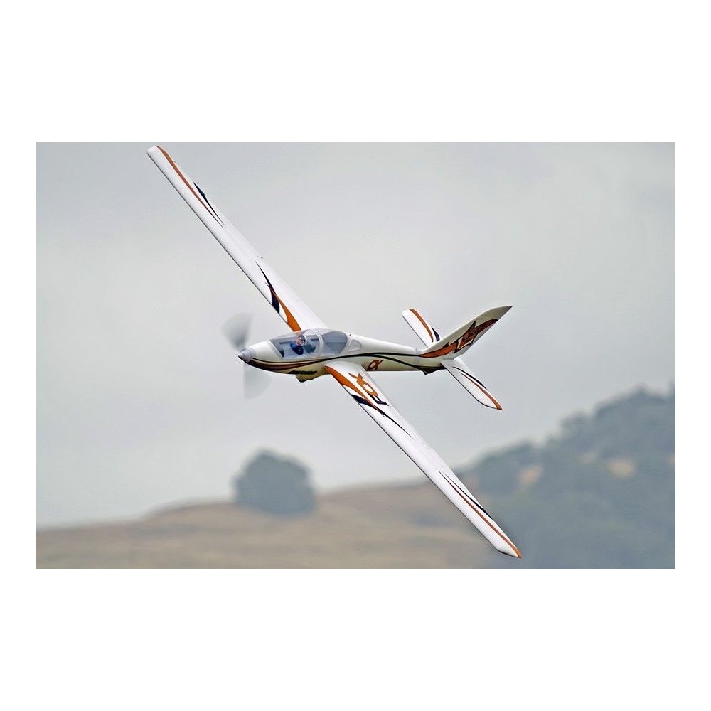Prakticky hotová polomaketa akrobatického větroně o rozpětí 3000 mm z téměř nezničitelného extrudovaného pěnového polyolefinu (EPO) se střídavým motorem C4258-460, 70A regulátorem a 6 servy. Ovládaná směrovka, výškovka, křidélka a klapky; pro napájení 6S LiPo 5000 mAh.