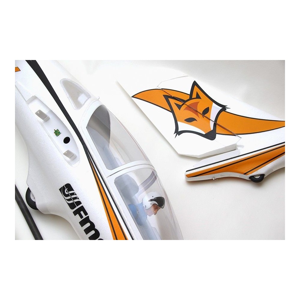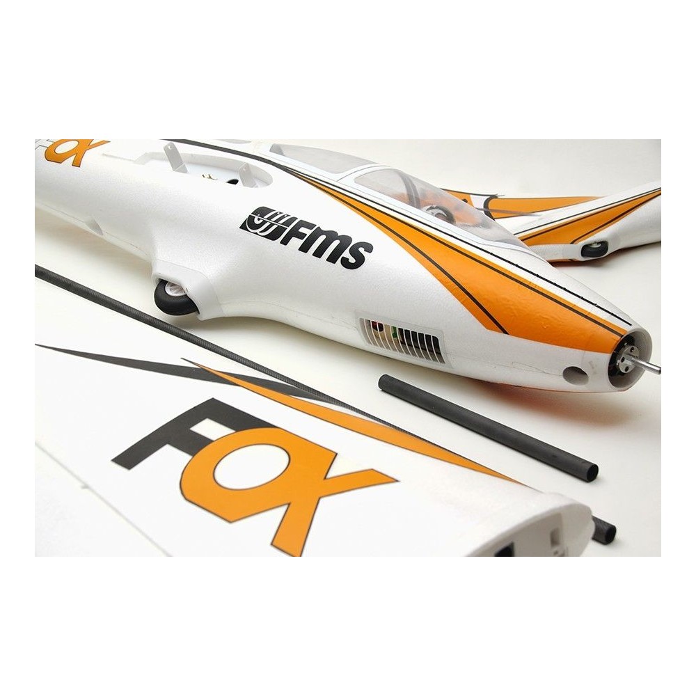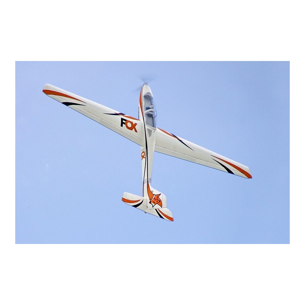 Trup modelu z pěnového EPO je dodáván s namontovaným střídavým motorem s rotačním pláštěm (C4258-KV460), sklopnou vrtulí 15x7,5“, s osazeným 70A střídavým regulátorem a servy směrovky a výškovky. Ve přední části trupu pod rozměrným odnímatelným krytem kabiny se nachází prostor pro akumulátory a palubní elektroniku. Pro FOXe budete potřebovat Li-poly šestičlánky 5000 mAh se zatížitelností 35C. Směrovka je ovládána servem uloženým v kýlovce; výškovka servem uloženým ve vodorovném stabilizátoru. Celá ocasní část trupu je pro snadnou přepravu a skladování odnímatelná - upevňuje se k přední části trupu pomocí trubkové spojky a bajonetové západky. Křídlo rovněž z pěnového EPO je dvoudílné, nasouvané z boku na trubkovou uhlíkovou spojku. Křidélka a klapky jsou ovládány vždy dvěma servy uloženými v křídle. Přistávací zařízení tvoří jednostopý podvozek s napůl zapuštěným hlavním kolem a malým ostruhovým kolečkem. Ovládána jsou křidélka, klapky, směrovka, výškovka a otáčky motoru.