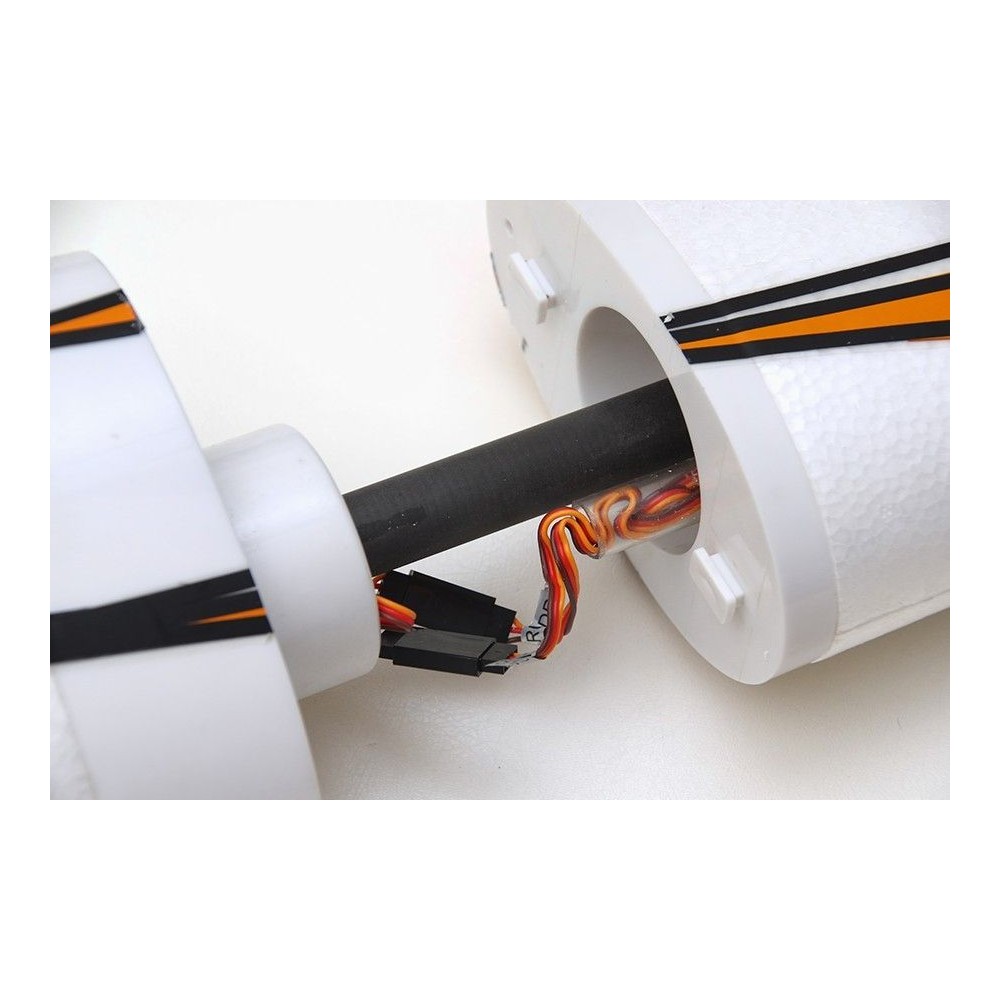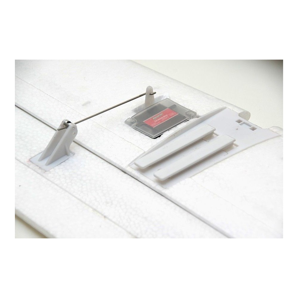 K ovládání modelu budete potřebovat přinejmenším šestikanálovou RC soupravu - v tom případě se obě serva křidélek i klapek zapojují pomocí Y-kabelů (jsou součástí stavebnice) do jednoho kanálu. Při zapojování přijímače se řiďte návodem k obsluze vaší RC soupravy. Ideální je, pokud máte aspoň sedmikanálovou počítačovou RC soupravu, která umožňuje nezávislé ovládání serv křidélek a klapek (vyžaduje připojení jednotlivých kabelů pro serva k multikonektorům mezi polovinami křídla a trupem). V tom případě můžete nastavit diferenciaci výchylek křidélek; pro začátek doporučujeme 50% - tj. výchylka křidélka dolů je poloviční ve srovnání s výchylkou nahoru. Hlavně pro snadnější přistání na svahu je výhodné křidélka mixovat jako aerodynamické brzdy (vyklápějte je nahoru).