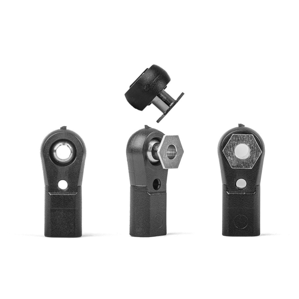 Dvojité (průchozí) nylonový pouzdro s kulovým čepem s otvorem 2mm pro pohyb bez tření. M3 závit v...