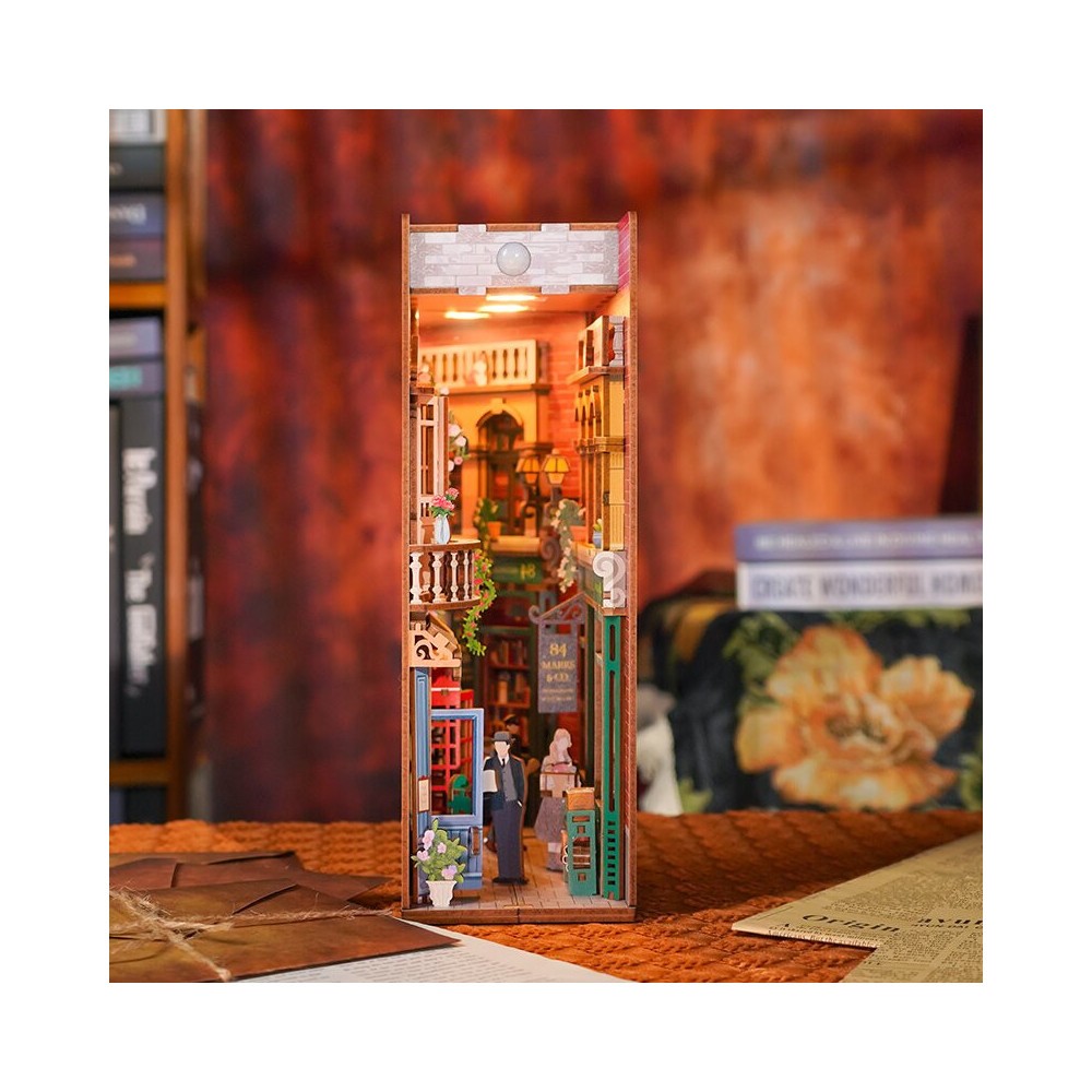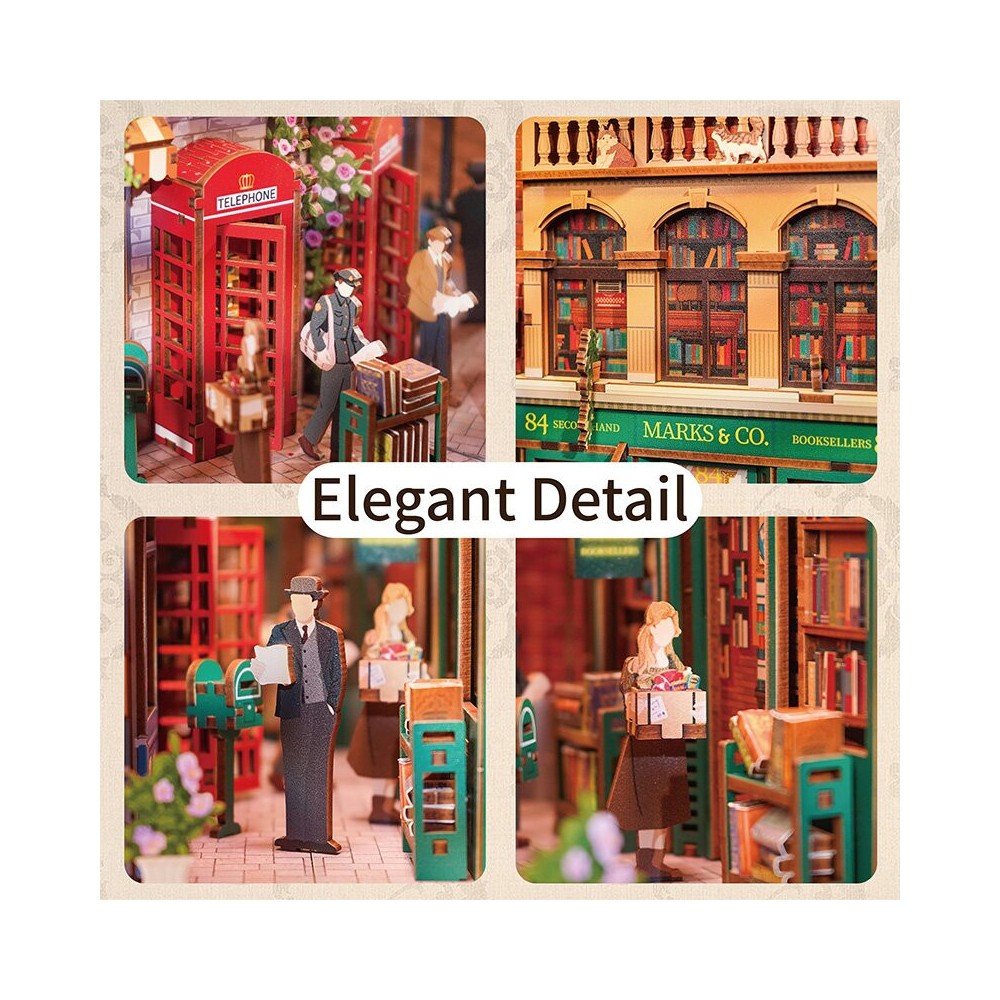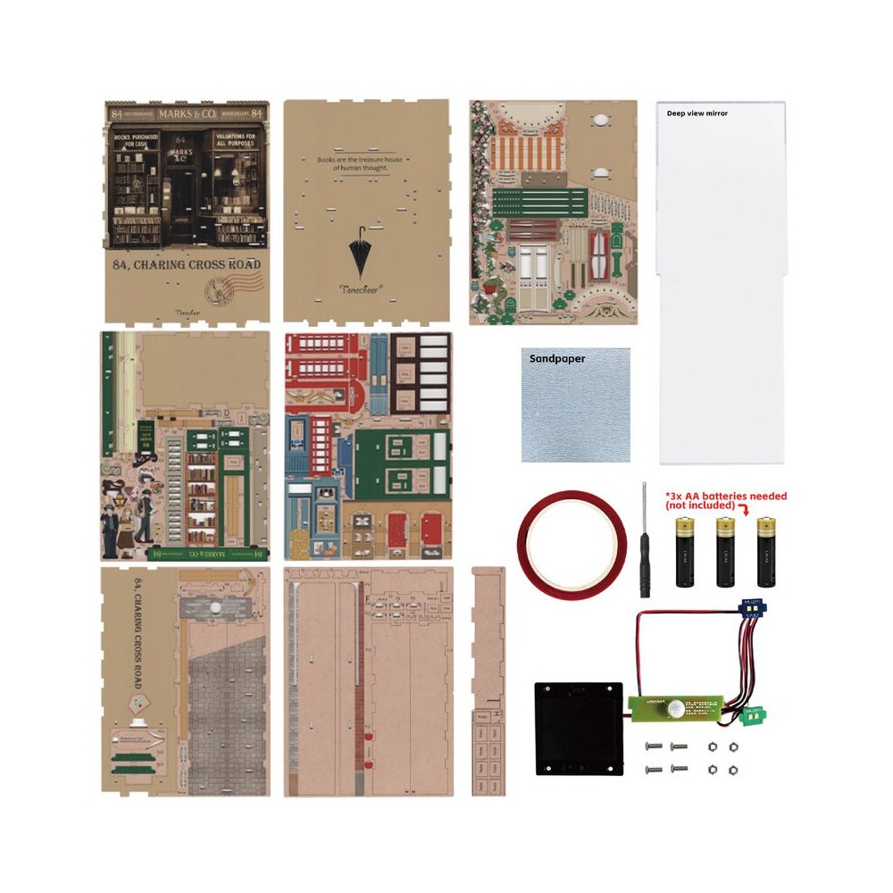 Zvoní 84 Charing Cross Road? Žádný problém, později vám přesně vysvětlíme, proč je tato adresa tak slavná, že o ní Tonecheer udělal Knižní zákoutí. Nejprve ale scéna v tomto 3D dřevěném puzzle. V takové autentické londýnské uličce, s úzkými fasádami a útulnými arkýři s malými okny, najdete na balkóně kočky. Muž v anglické buřince čte dopis. Čtěte rychle dále, pokud chcete vědět, proč potřebujete vyrobit krabici šunky a plechovky v tomto 3D puzzle.