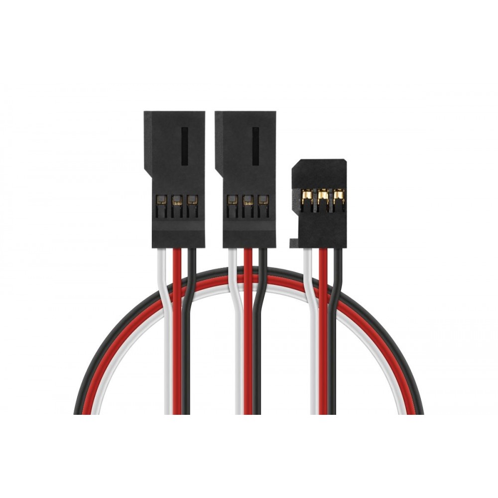 Plochý Y-kabel s konektory Futaba o délce 300 mm s PVC izolací, průřez vodičů 0,25 mm2.