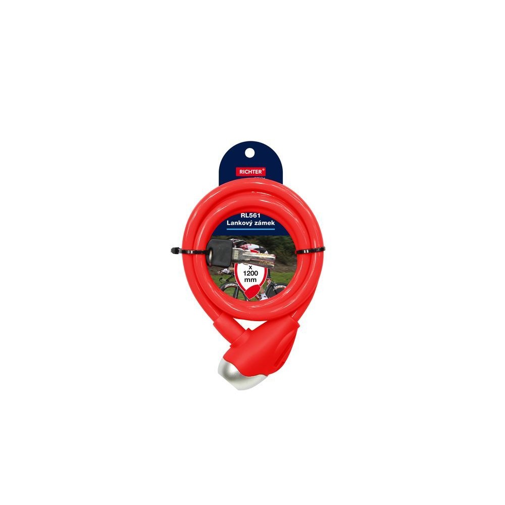 Zámek lankový 10x1200mm červený 2ks klíčů Richter