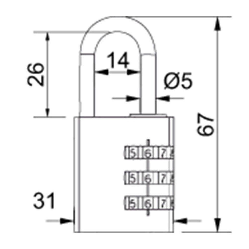 Zámek vis.20mm Tokoz kódový RV 20/3 Ms 3-stupnice