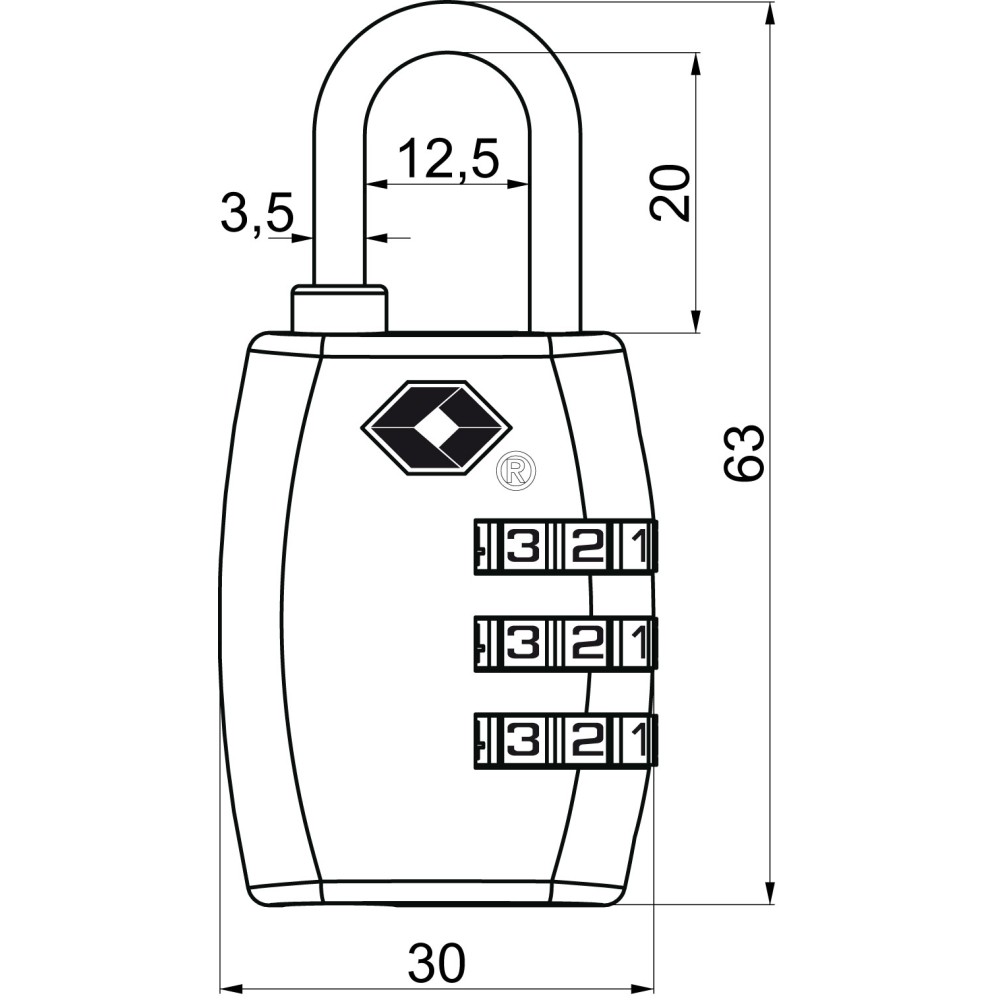 59x31x14mmKódový, cestovní TSA visací zámek s indikátorem otevření