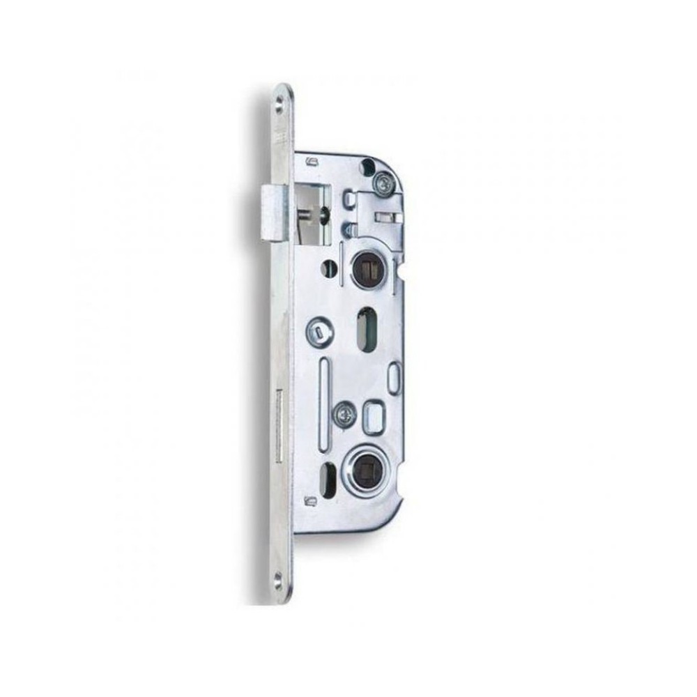 osa 50Zámek zadlabací vložkový, s převodem, dvouzápadový. Rozteč 90 mm, střed 50 mm, zádlab 80 mm.