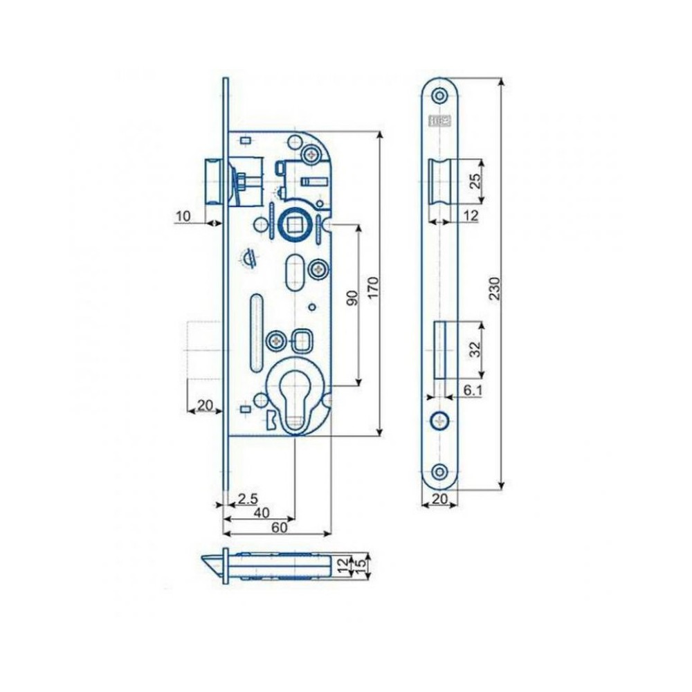 osa 40Zámek zadlabací dozický, bez převodu. Rozteč 90 mm, střed 40 mm, zádlab 60 mm.