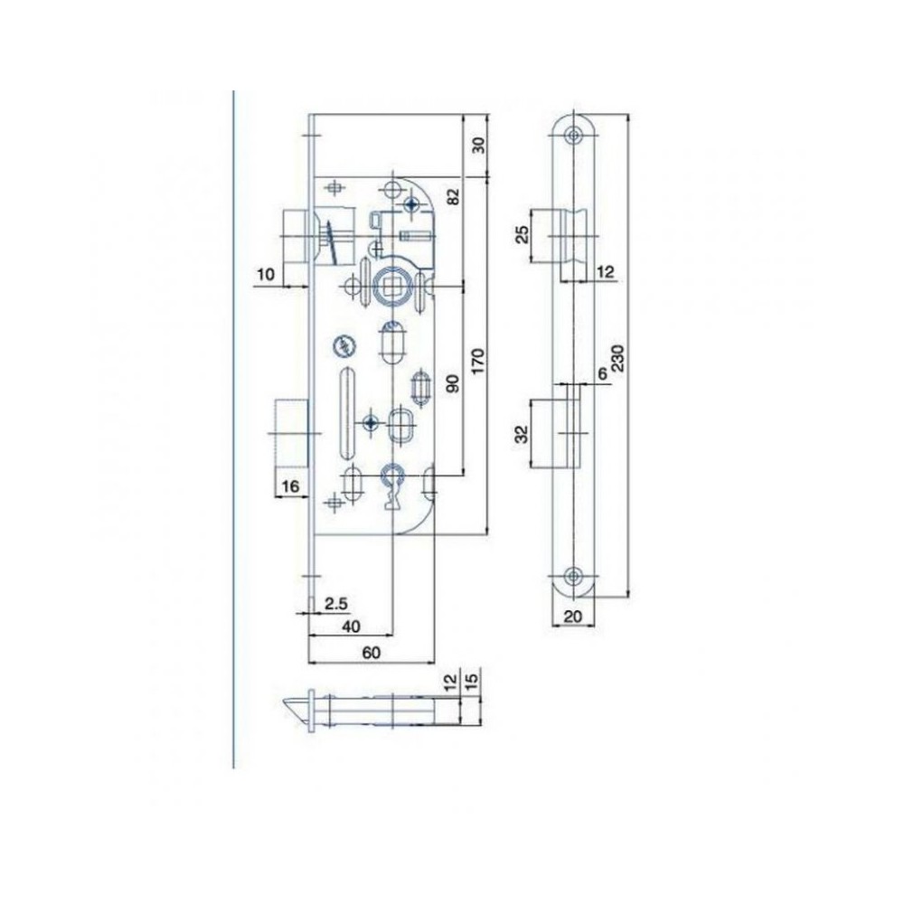 osa 40Zámek zadlabací dozický, bez převodu. Rozteč 90 mm, střed 40 mm, zádlab 60 mm.