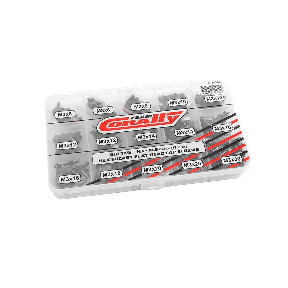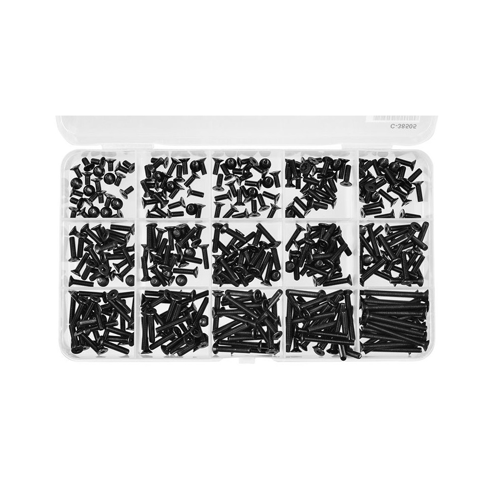 Imbus šrouby s zápustnou hlavou - sada/box - M3 - ocelové černé, 375 ks.