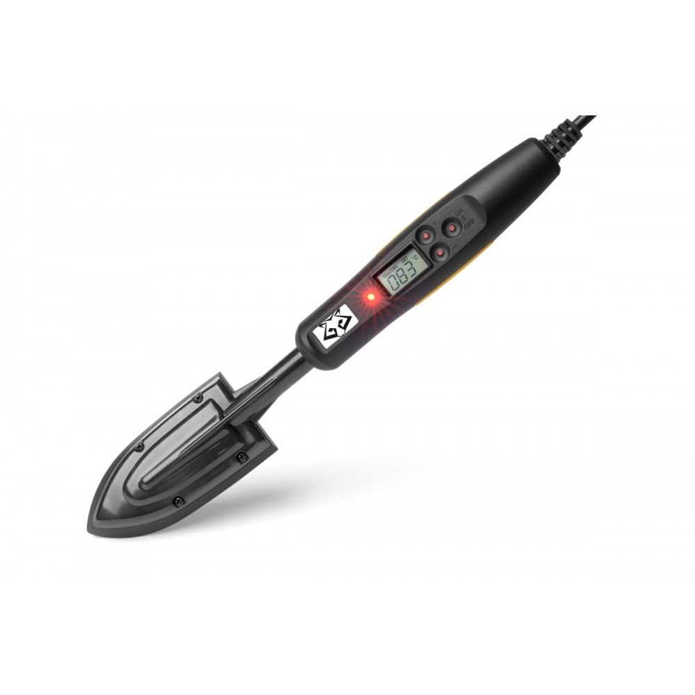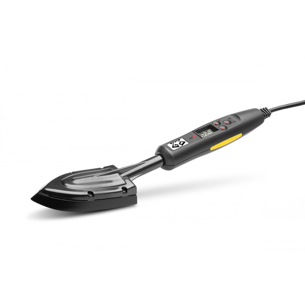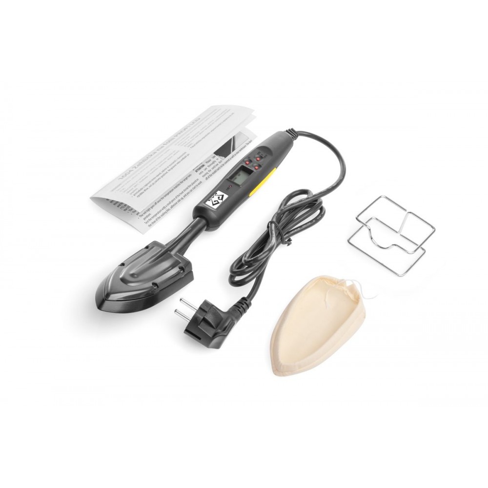 Profesionální modelářská potahovací žehlička s teflonem potaženým tělem, elektronickou regulací teploty a digitálním zobrazením teploty. Dodávána se stojánkem a ochranným návlekem.